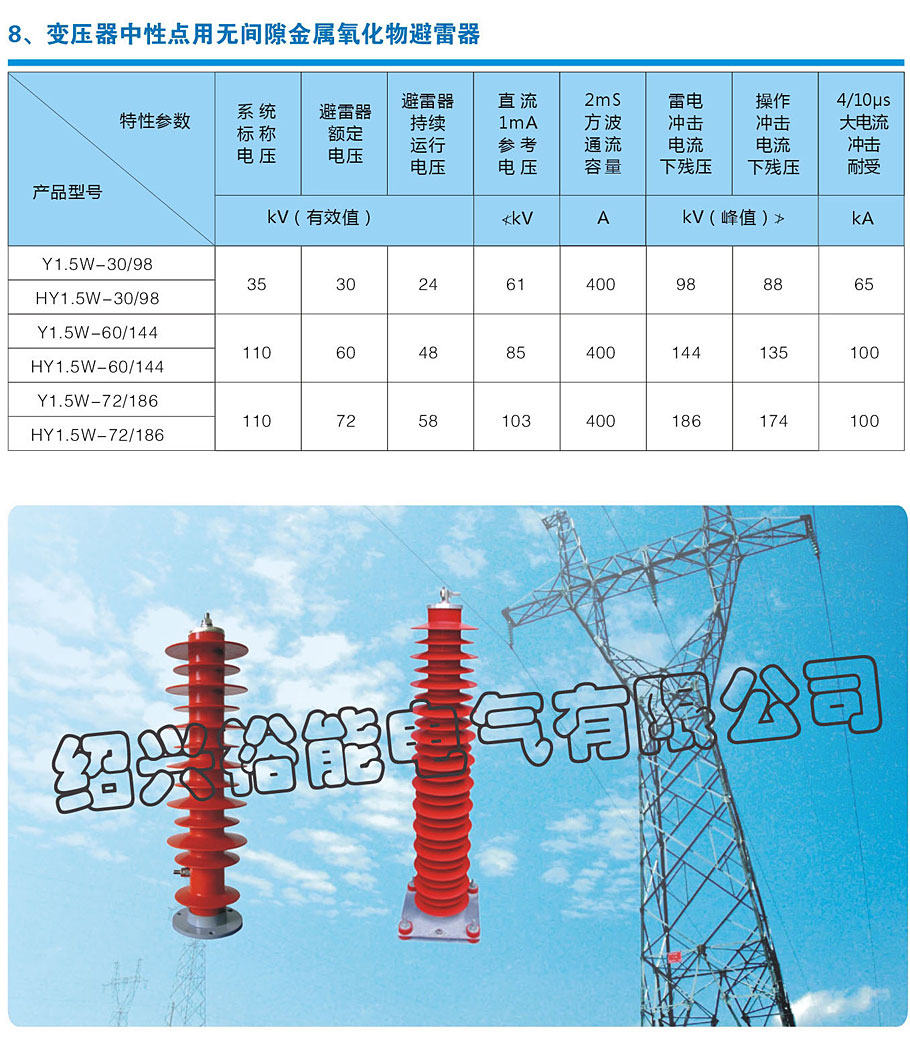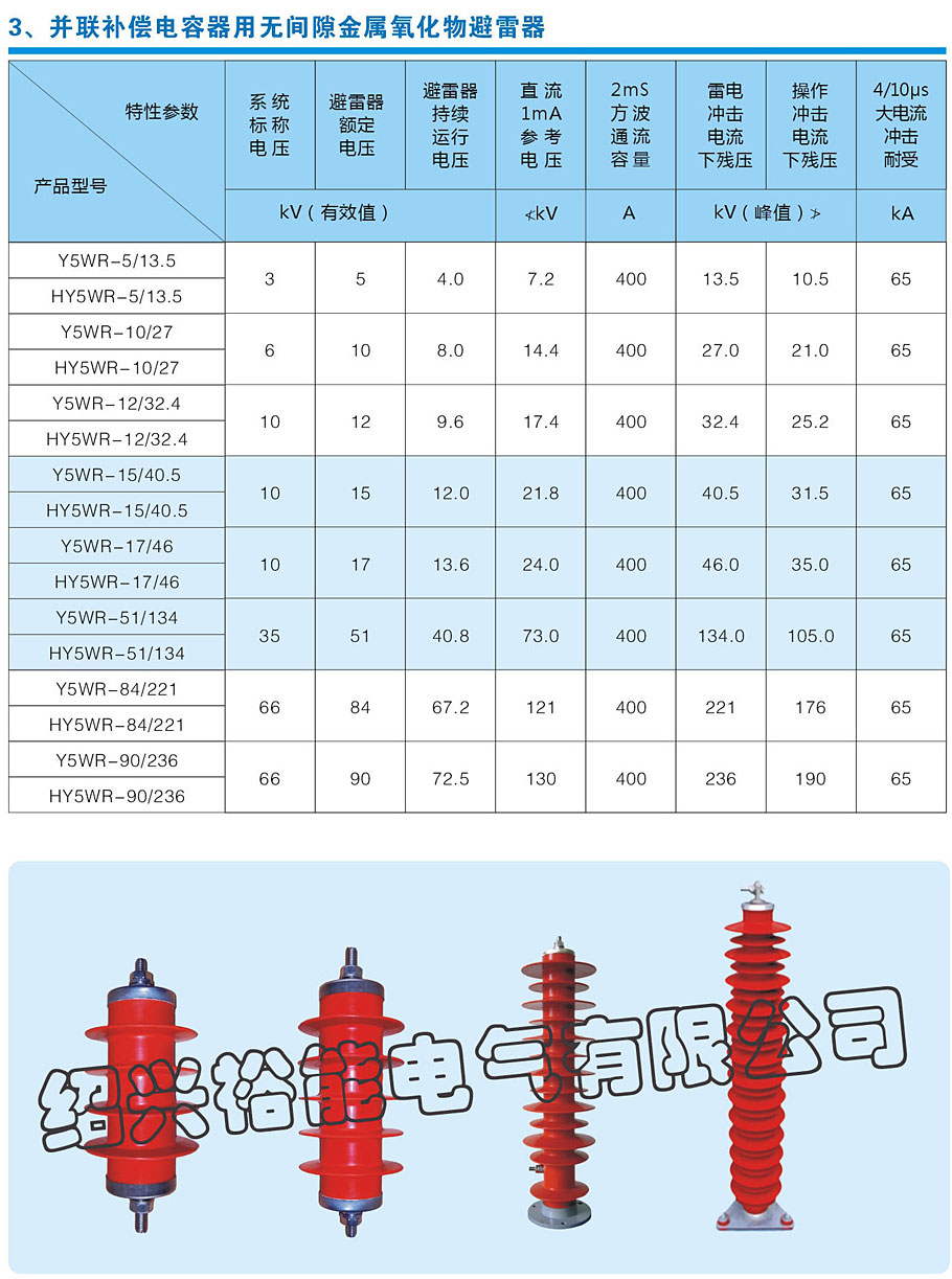 3、并联补偿电容器用无间隙金属氧化物避雷器
