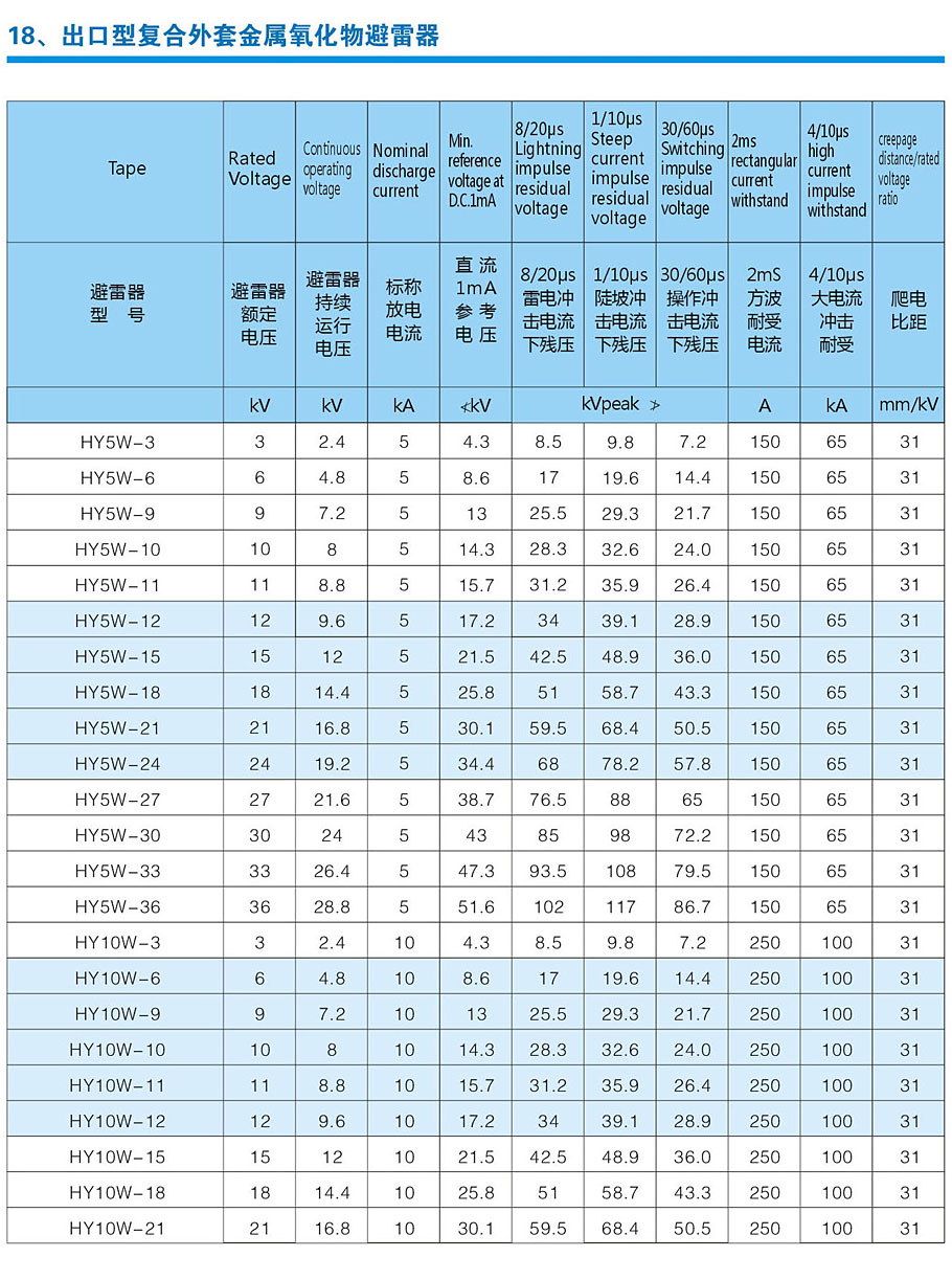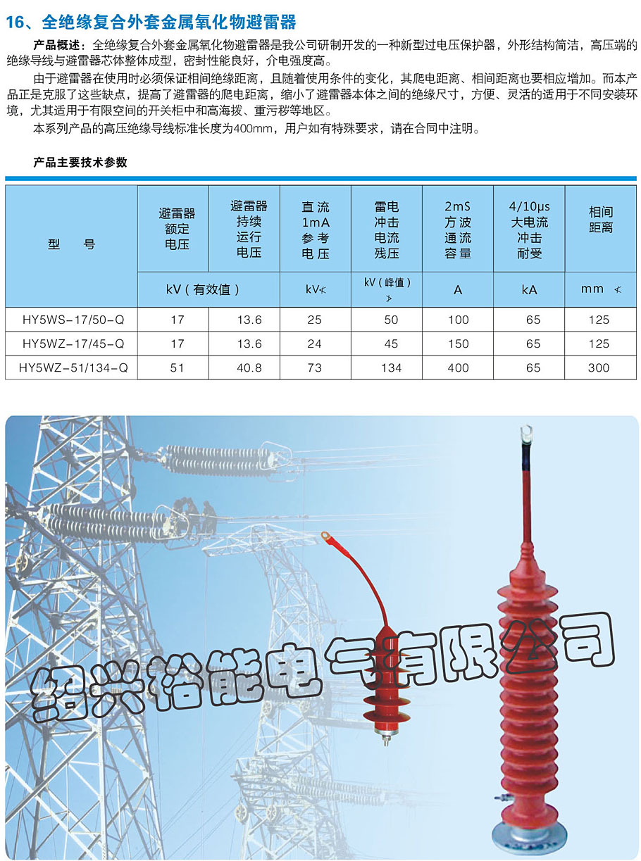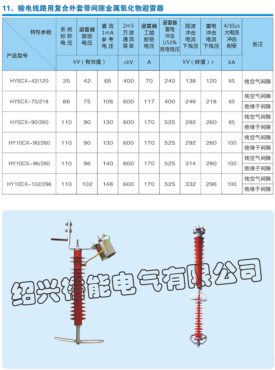 11、输电线路用复合外套带间隙金属氧化物避雷器