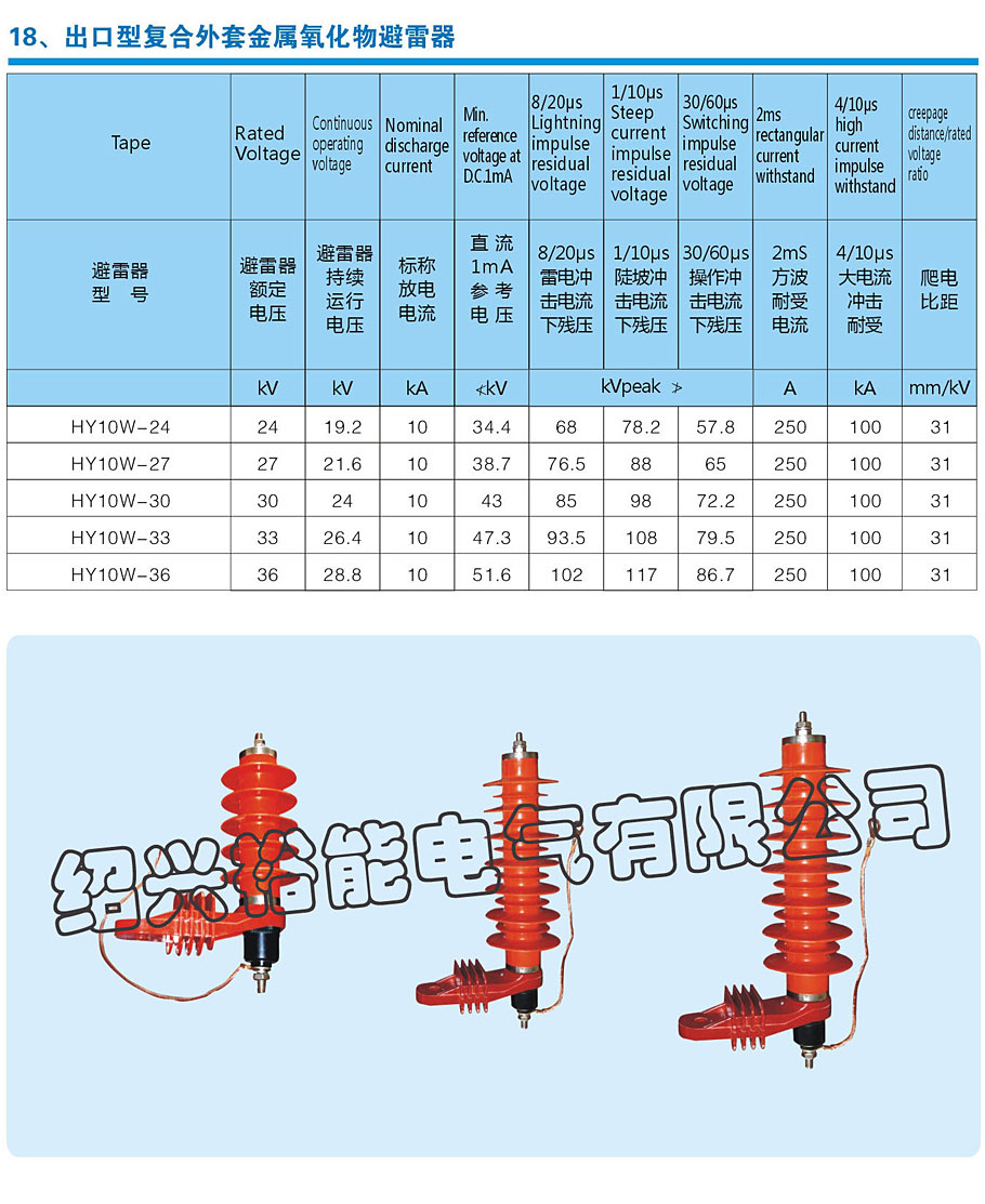 10、输电线路用复合外套无间隙金属氧化物避雷器
