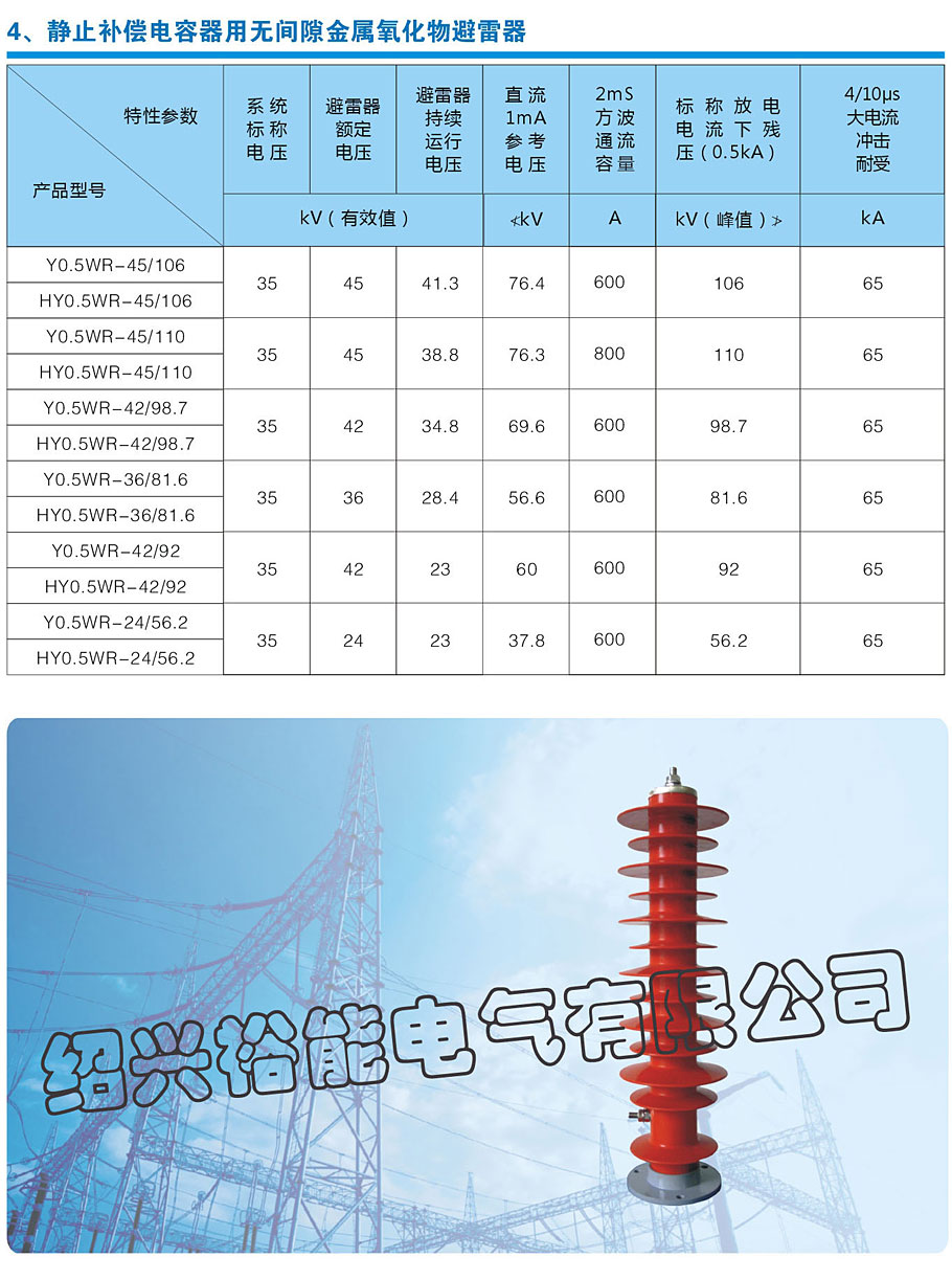 4、静止补偿电容器用无间隙金属氧化物避雷器